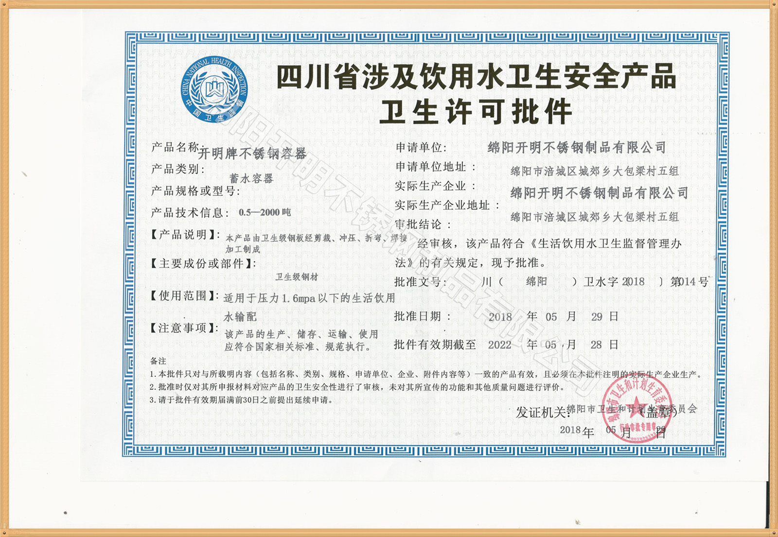 綿陽開明不銹鋼制品有限公司